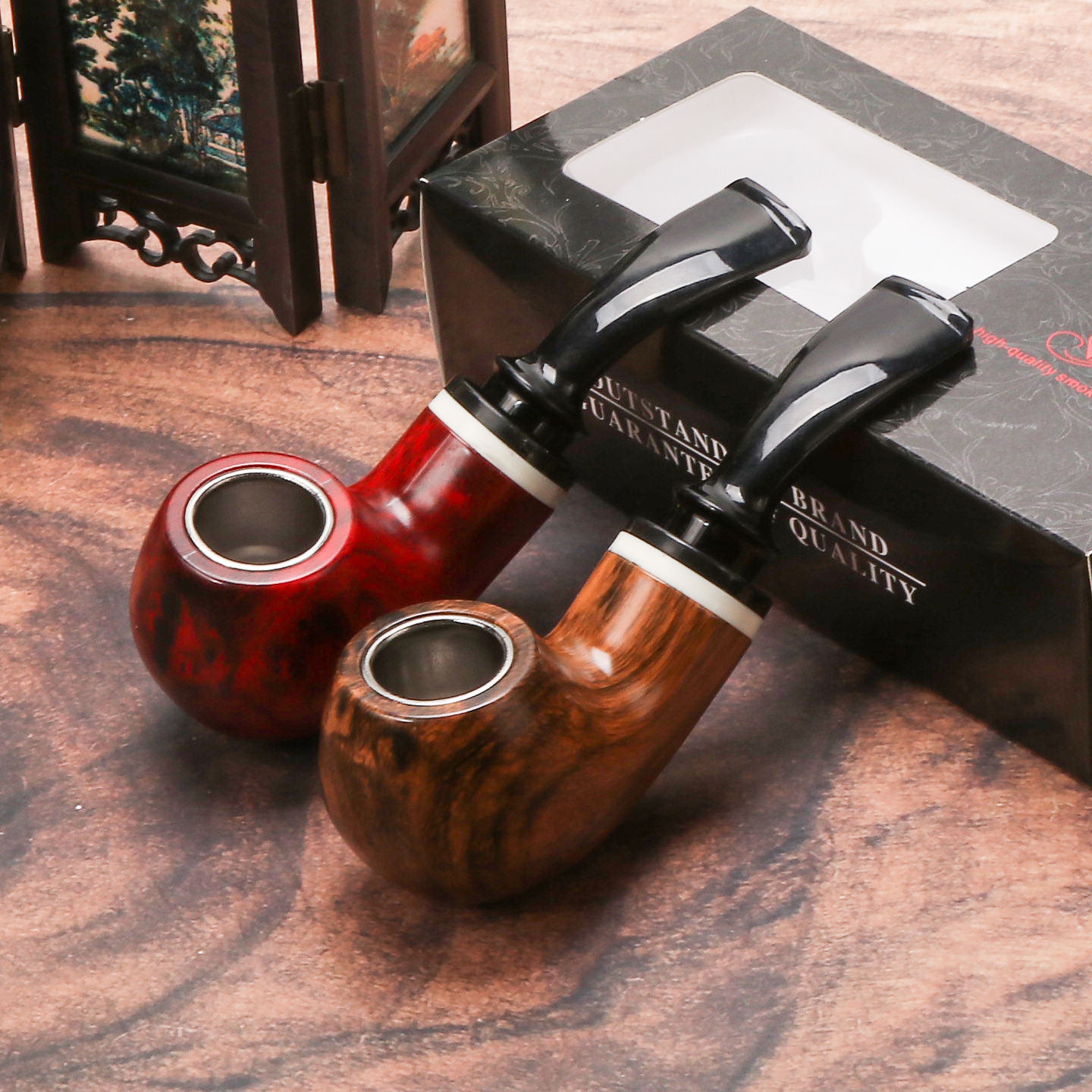 Classic, tobacco pipe with a characteristic mouthpiece for a 9 mm filter. The pre-carbonized furnace will accommodate the standard amount of your favorite tobacco. The slightly tilted bowl and the degree of bend of the shank make the pipe fit perfectly in the hand, it can also be easily held only with the teeth. Furnace with the appropriate diameter and replaceable absorbent filters make the pipe perfect for learning how to smoke pipe tobacco. None Wooden
